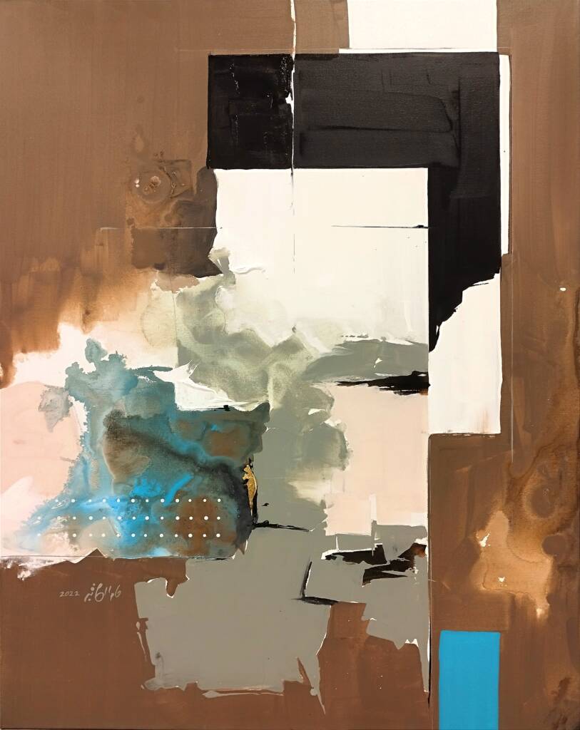 إنَّ الخطابَ الفني في لوحة الخريف تعطي مفرداتها وسطوحها مع المُحفِّزات الانسانيةِ بعلاقاتها الخاصةِ والجدليةِ دون التورّط في محاولة تقديم أبعاد توضيحية لإسناد الرؤية وإيصالها، فهي نتيجة تكثيف الرؤى الفلسفيةِ في تفاعلاتِ المفرداتِ على سطح اللوحةِ. فالفن بالنسبة لي يبقى اشتغالا في ميدانِ التساؤلِ وحاجةً إنسانية داخليةً وليست ترفاً جمالياً يتبهرج ويتزين بالألوان انما هو استئثارٌّ بالمعنى عبر طروحاتٍ شكليةٍ استعرضها في مساحاتٍ لونيةٍ ومعمارية. لقد كان هاجسي في إشتغالاتي اللونية الى الوصولَ لتحقيقِ إستثارات وانطباعاتٍ عاطفيةٍ ينقلها الامتاعِ البَصَري الذي تتشكلُ مِنهُ السلعة الفنية انما كنت أذهبُ بمساحاتي الى بُقعٍ ضوئيةٍ تغتسلُ بالصّمتِ ليكتشفَ من خلالِها اغتراب و صَرامةِ هذا العالم الذي تنقّل بين الاوهام والاحلام وأسْيِجَة شاردة من لحظاتِ العَتمَةِ التي كانت تُلاحقني خطواته بكل مكان وبكل وقت. استخدمت الرموز والمساحات اللونية المناسبة للعنوان التي تعطي انطباع للرائي ان يقف امام مشهد غروب في غابة خريفية الموسم تتداخل الالوان البرتقالية والبنية وبشكل تلقائي عفوي كما لو انك تقف على ما نفضته الاشجار من اغصان واوراق شاخت من قسوة الظروف كما هو الحال لدى الجنس البشري فضلا عن المربعات التي بمثابة النوافذ التي يطل منها عمر الانسان الذي يذوب وينصهر في مدخلات الزمن على مدى مسيرة الحياة فمنهم من شاخت ملامحه وهو في ريعان الشباب ومنهم من قضى وهو في سن الشيخوخة، تستفز العناصر المستخدمة في العمل الفني هذا تستفز المتلقي لتجعله أسيرا أمام العمل وتشده ليتسمر أمامه.